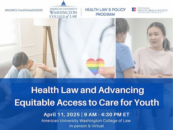 The American University Washington College of Law Health Law and Policy Program, with the support of the American University Center on Health, Risk and Society, is pleased to host a one-day symposium, Health Law and Advancing Equitable Access to Care for Youth, on Friday, April 11th from 9:00 AM - 4:30 PM ET (in- person and virtually).